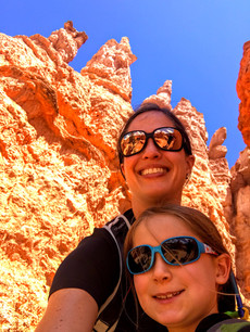 In Zion we were looking up from the canyon floor, and now at Bryce we look down from the canyon rim. In both cases, we didn't stop there, we hiked the direction we looked. Here in Bryce, that means that we hiked down among the hoodoos through the Queen's Garden and then up through Wall Street. The colors and grandeur of the rock features were spectacular and emphasized by walking directly among them. Our timing was once again very fortunate, as a rain storm came through that evening and excited everyone with multiple lightning strikes.